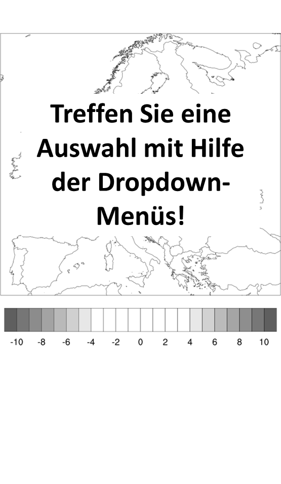 Die im Menüpunkt "Klimaänderungen in Zukunftsprojektionen" gezeigten Ergebnisse bestehen in den Unterschieden zwischen der ausgewählten Zeitperiode und dem Klima im Referenzzeitraum 1971-2000. Die folgenden Karten zeigen dagegen das absolute simulierte Klima in der ausgewählten Zeitperiode (z.B. wie warm wird es im Zeitraum 2070-2099 sein?).